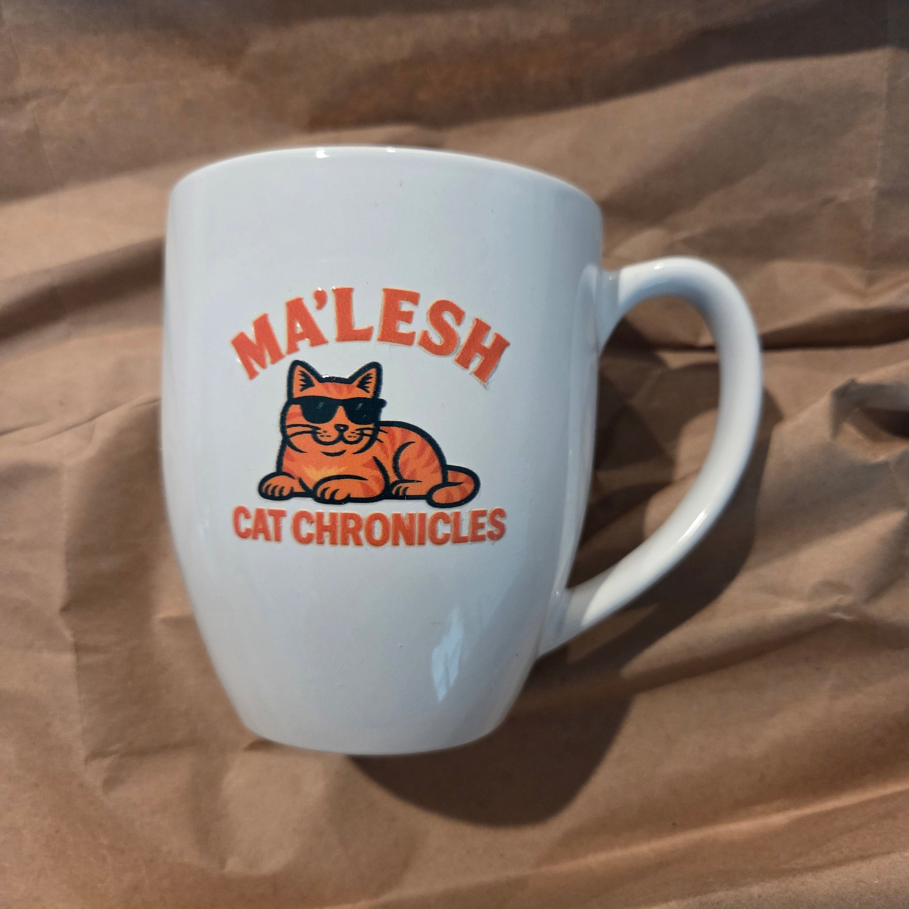 Elevate your morning routine with the MA'LESH Cat Chronicles Mug, featuring our iconic chill tabby cat in sunglasses. This premium ceramic mug combines unmatched style with exceptional durability.