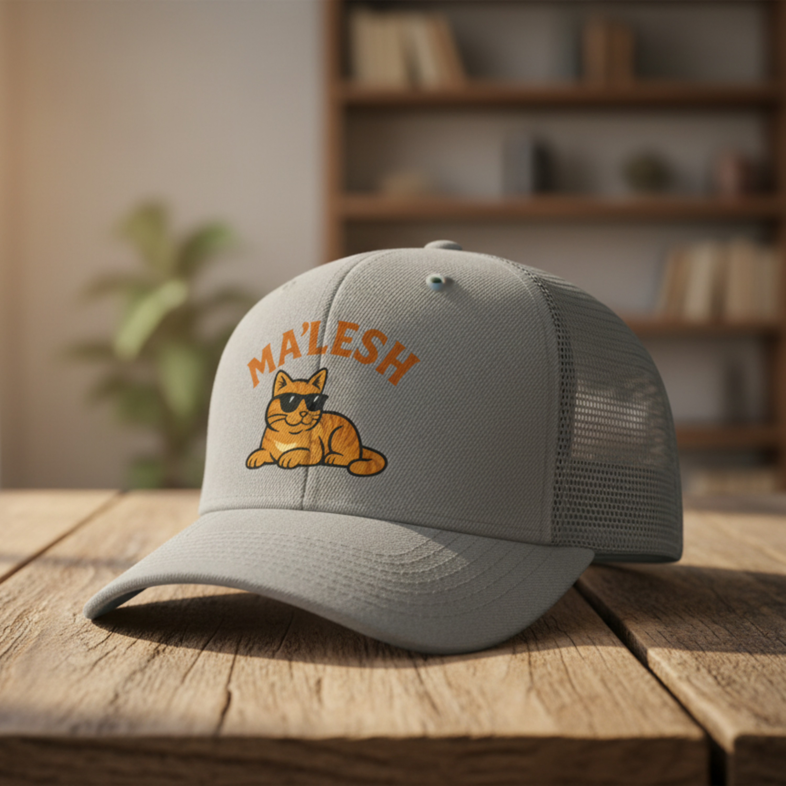 Ditch the boring headwear and top off your look with the MA'LESH Cool Cat Hat. This unique trucker hat features a hilariously chill tabby cat rocking sunglasses, reminding everyone to take it easy. With its classic breathable mesh back and comfortable fit.
