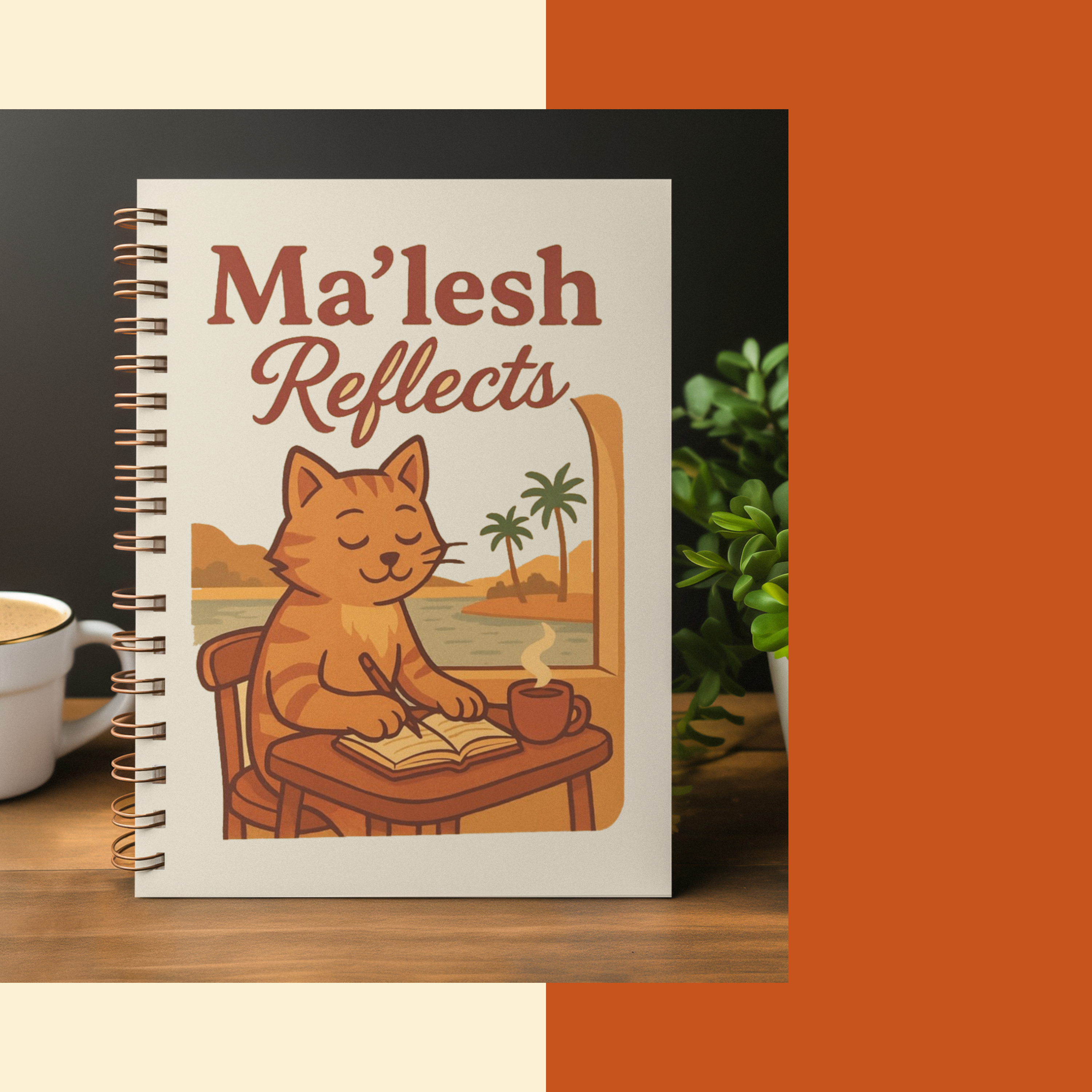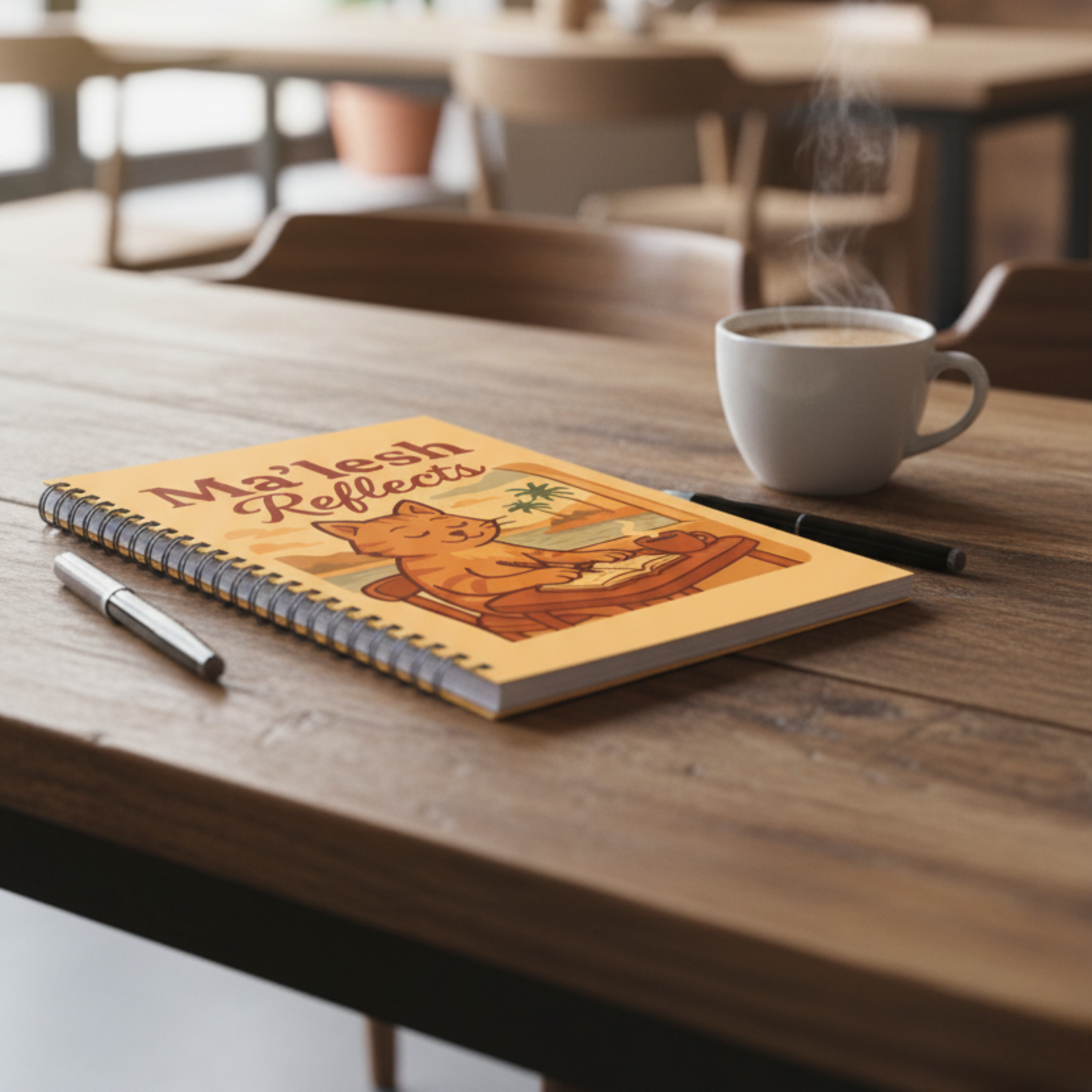 The Ma'lesh Reflects Notebook is more than just a writing tool; it's a companion for your daily reflections. Featuring serene artwork of an Egyptian cat by the Nile, this spiral-bound notebook offers 80 lined pages perfect for journaling.